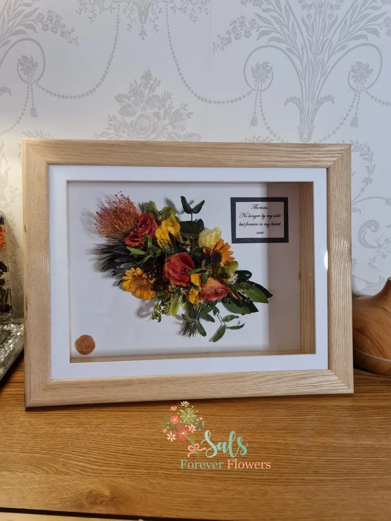The good thing about using Sals Forever Flowers to have your precious petals preserved is the service is completely bespoke. We will work with you to create the perfect keepsake. If there is a certain way you would like your flowers displayed or arranged this can be done.  If there is a product you cannot find in the shop Shop – Sals Forever Flowers | Flower Preservation please contact me and I will do my best to meet your requirements. You can contact me using the contact form or any of the methods which can be found here Contacts – Sals Forever Flowers | Flower Preservation