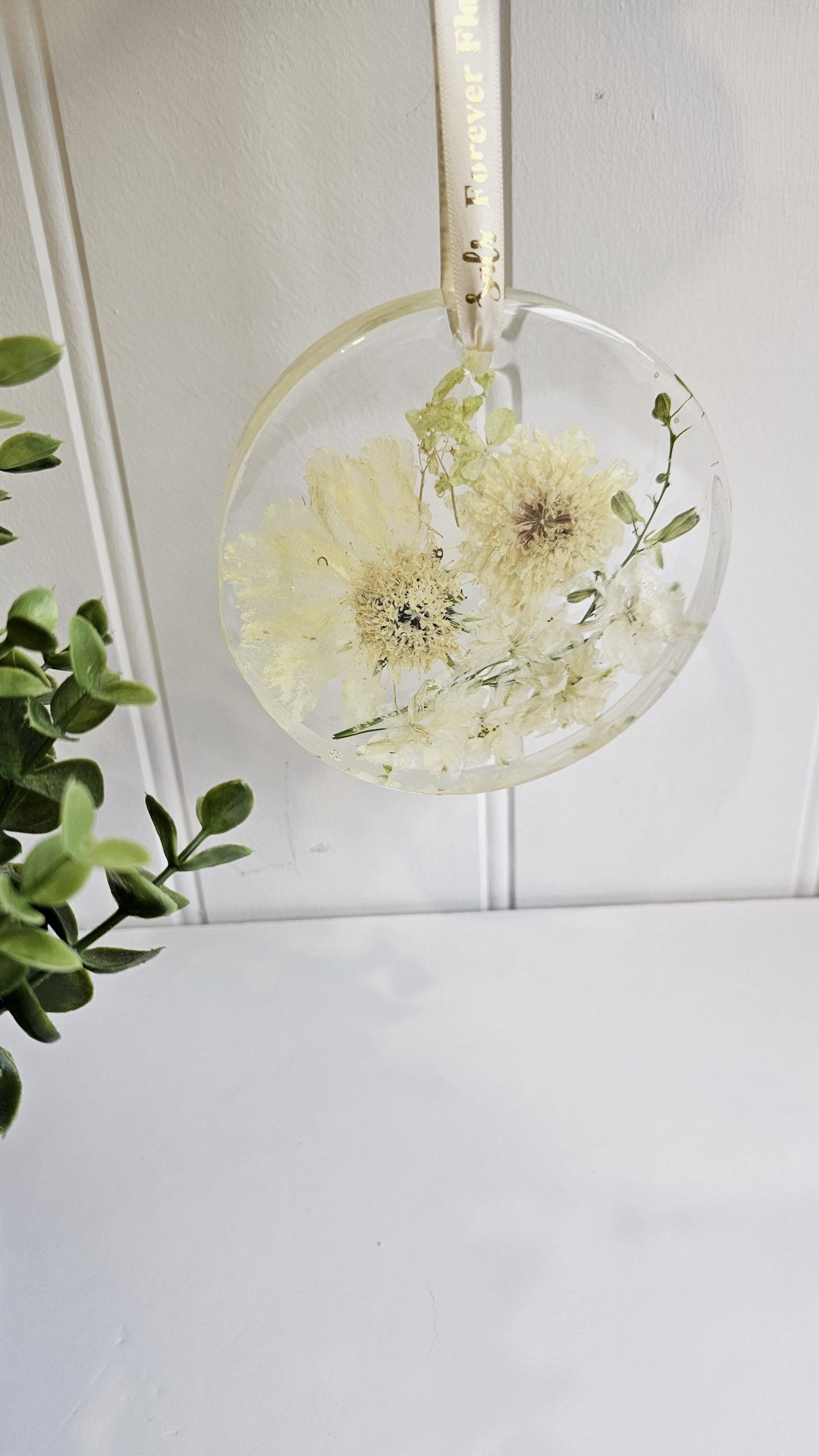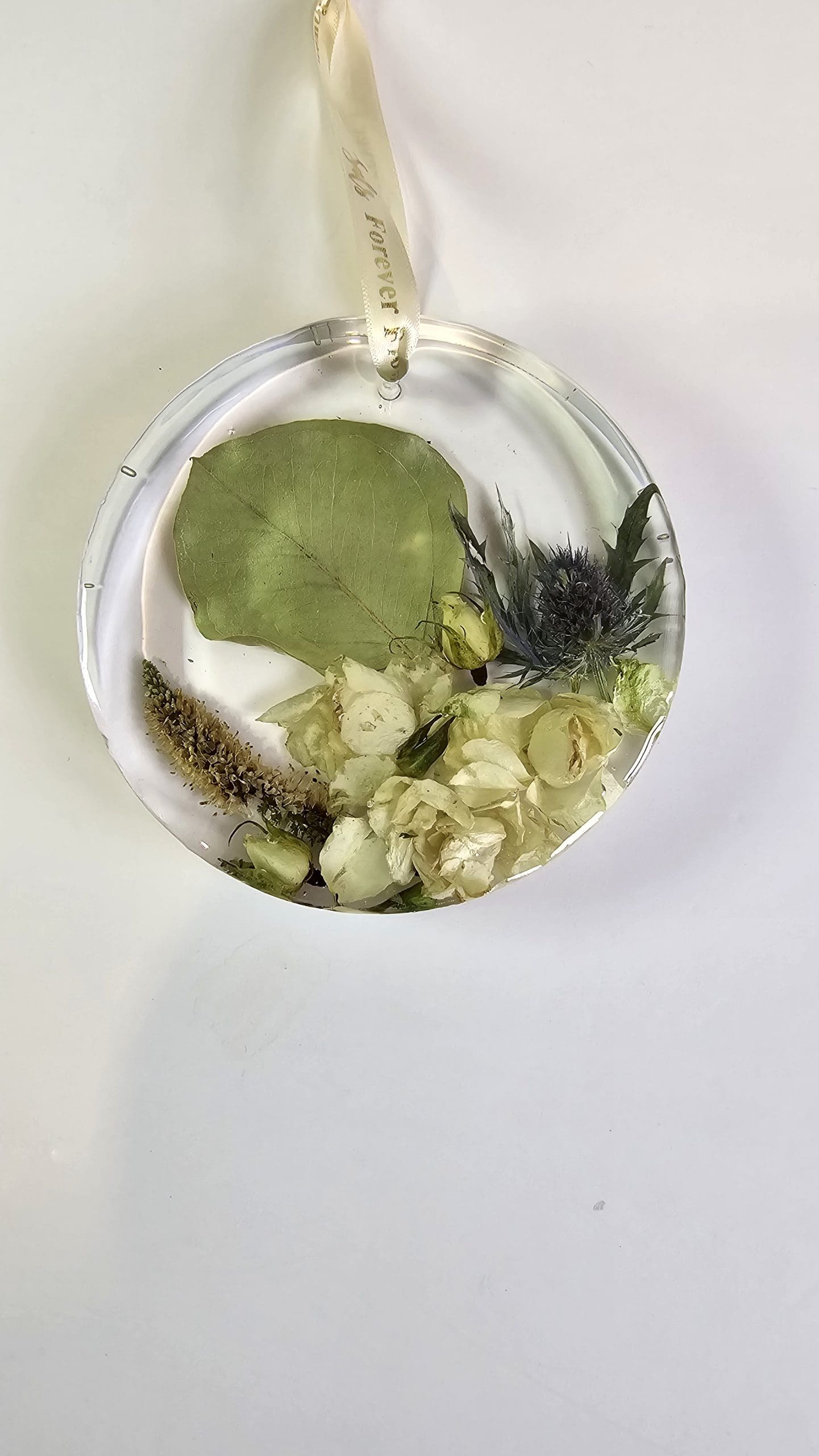 Preserve your special blooms forever with our Flower Preservation Hanging Round Disk—perfect for weddings, funerals, or sentimental keepsakes. Each handcrafted resin disk beautifully showcases single or smaller flowers for timeless display.